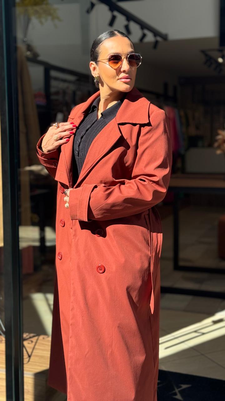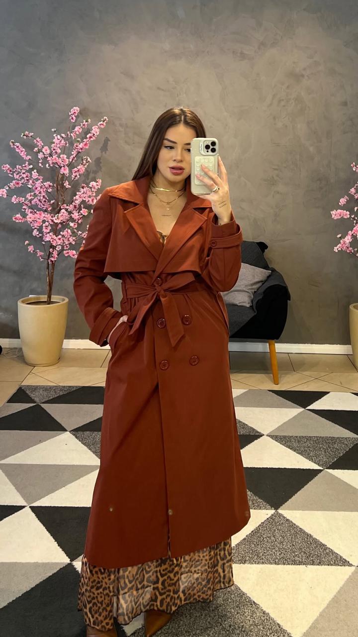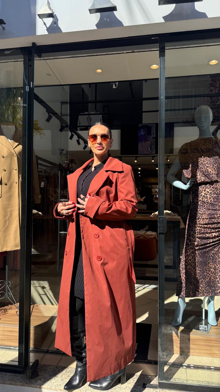 Casaco Trench Coats em alfaiataria, uma excelente opção para dias frios e chuvosos.