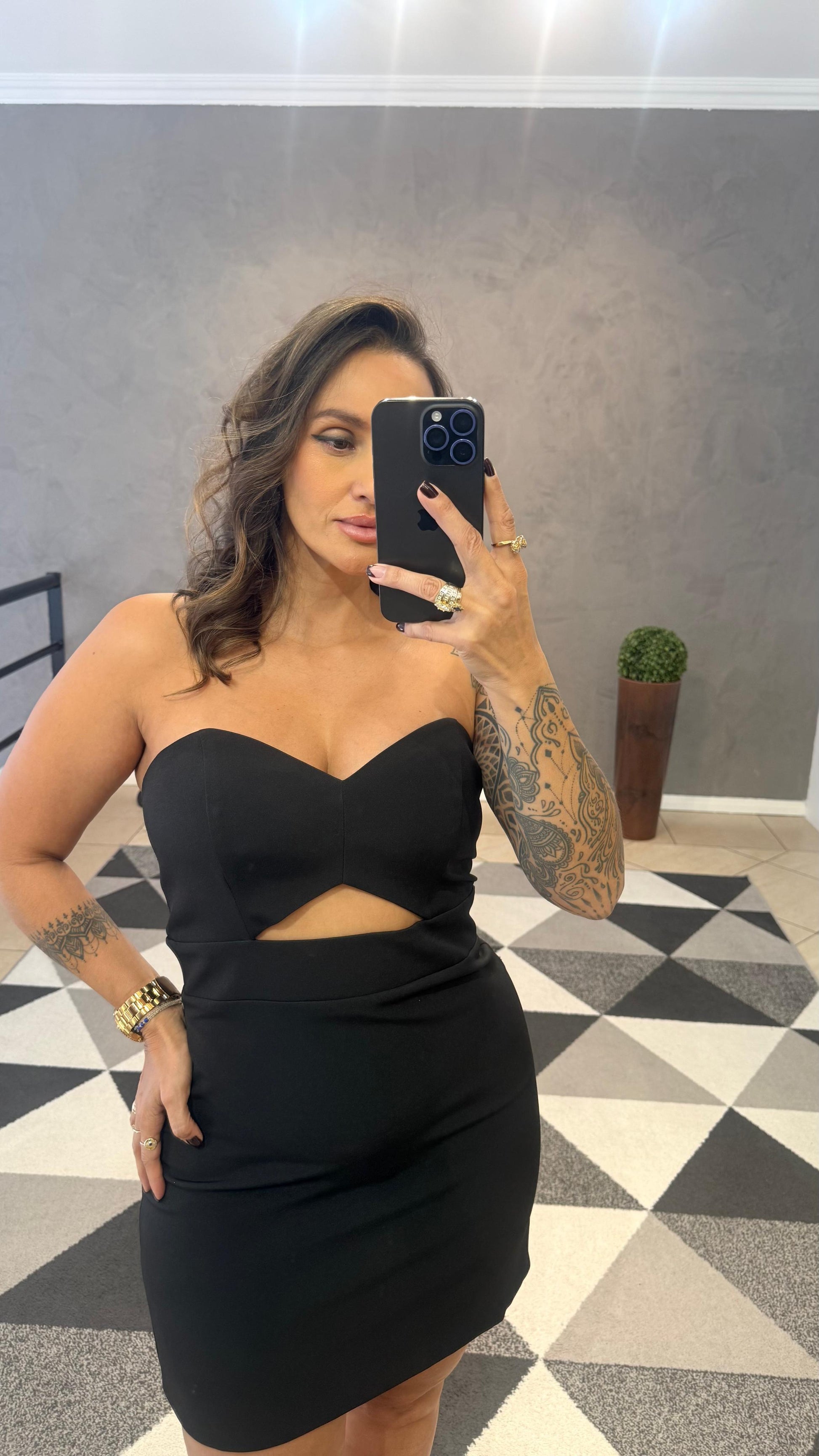 Um vestido encantador com um detalhe de flor de cetim que pode ser removida, trazendo toda delicadeza e também um toque de ousadia.